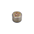 Der Grinder Leaf Bling Bling hat einen Durchmesser von 50 mm und eine Höhe von etwa 38 mm. Er ist aus hochwertigem eloxiertem Aluminium gefertigt, was ihm Langlebigkeit und eine ansprechende Optik verleiht.